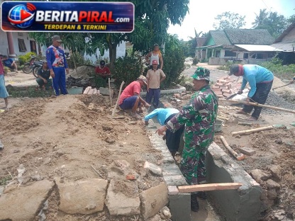 Beritapiral.com – Meraksa Aji, Tulang Bawang — Babinsa Koramil 426-05/PA, Kodim 0426 Tulang Bawang, Sertu Sukardi, bersama masyarakat melaksanakan kegiatan Karya Bhakti dalam pembuatan talud